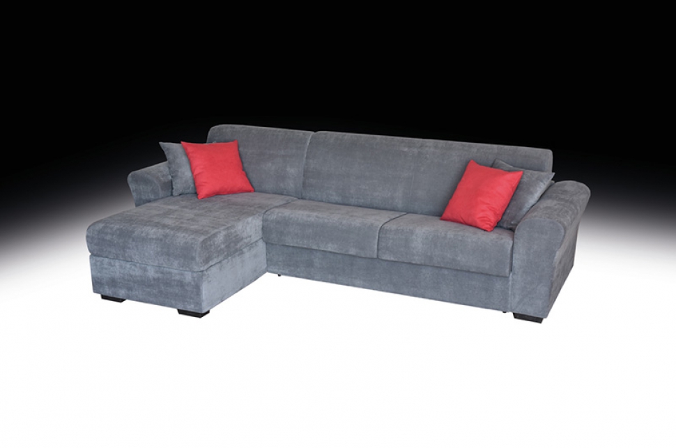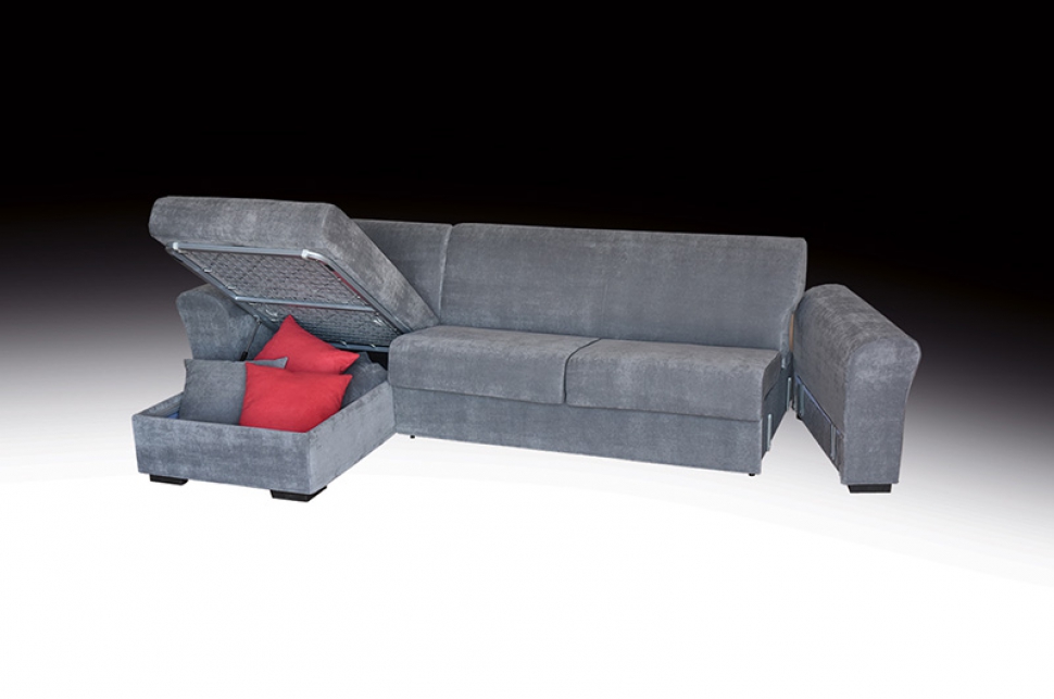 Meccanismo letto in acciaio strutturale con apertura mediante capovolgimento anteriore dello schienale e delle sedute senza rimozione degli elementi di tappezzeria.