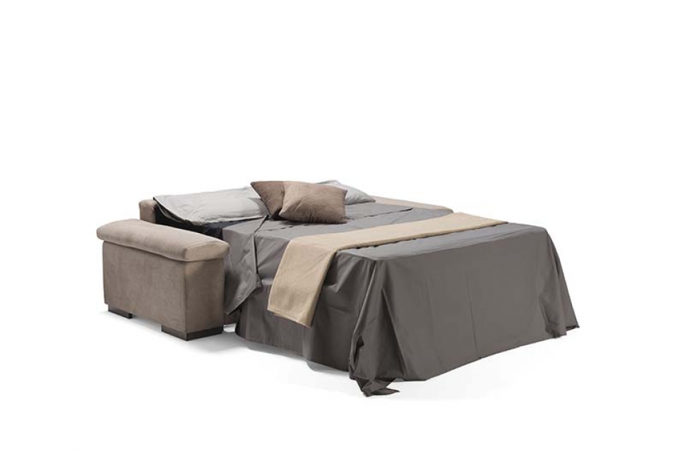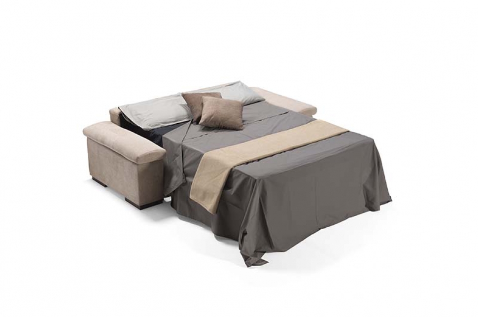 Meccanismo letto in acciaio strutturale con apertura mediante capovolgimento anteriore dello schienale e delle sedute senza rimozione degli elementi di tappezzeria.
