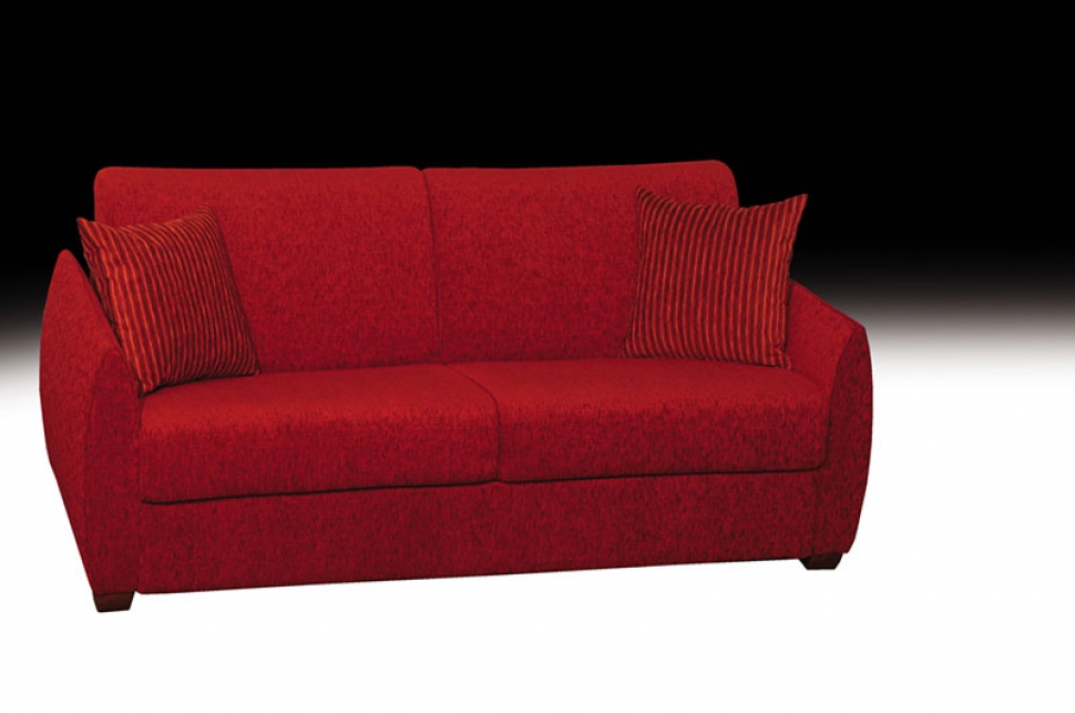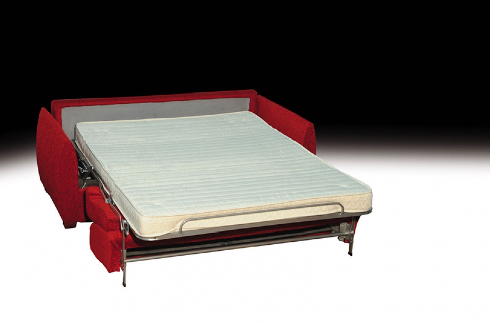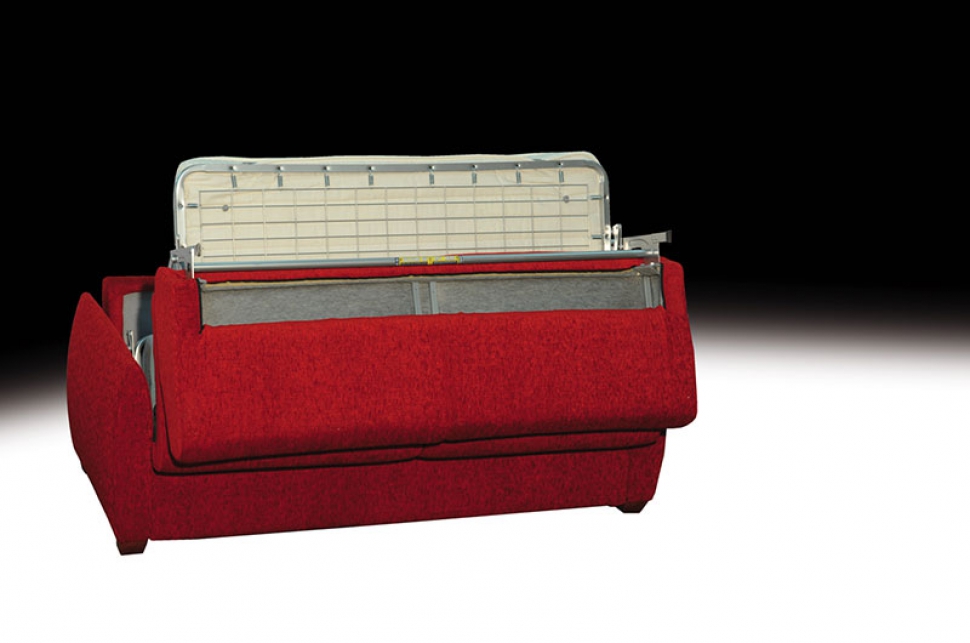 Meccanismo letto in acciaio strutturale con apertura mediante capovolgimento anteriore dello schienale e delle sedute senza rimozione degli elementi di tappezzeria.
