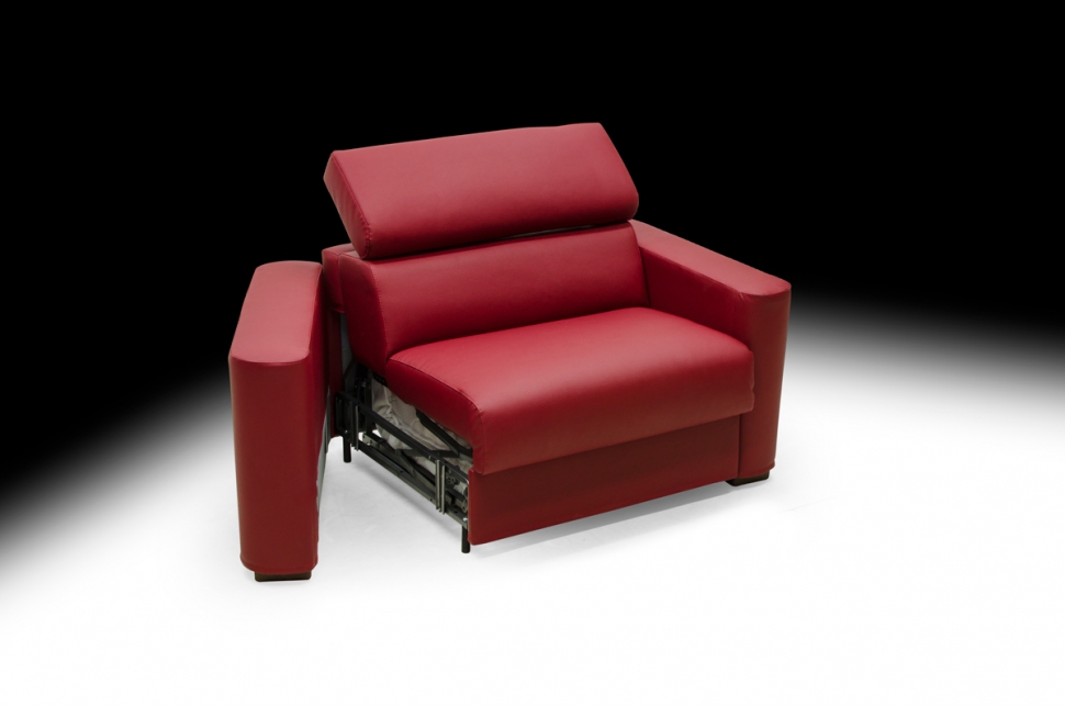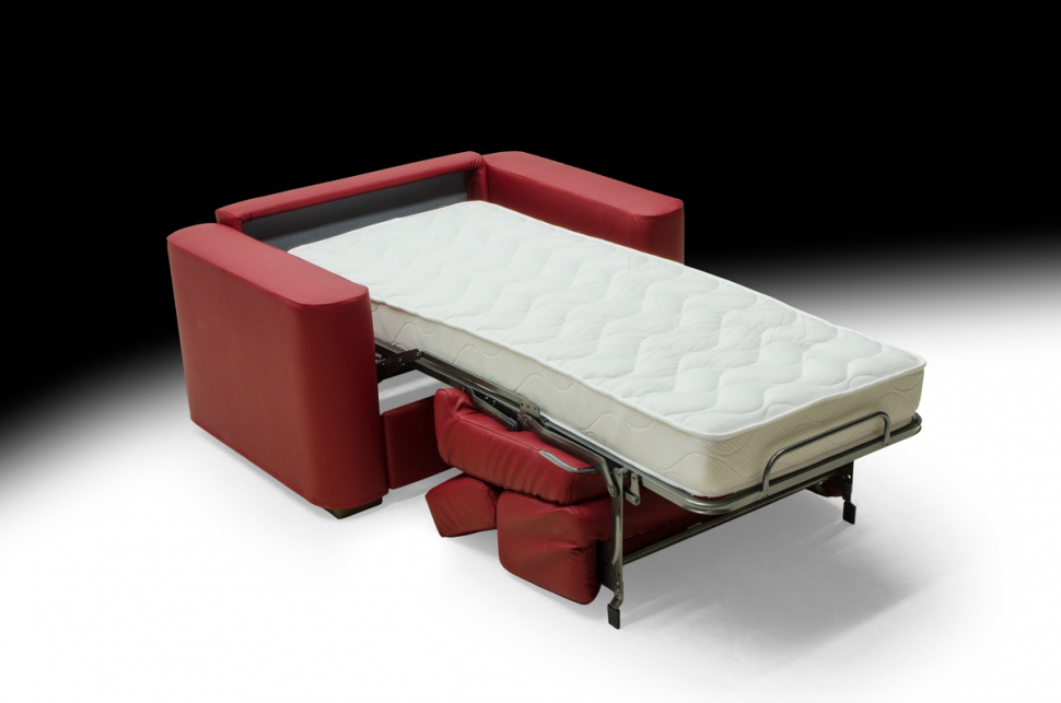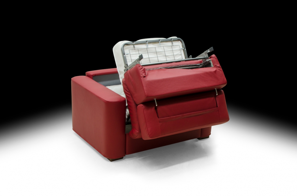 Meccanismo letto in acciaio strutturale con apertura mediante capovolgimento anteriore dello schienale e delle sedute senza rimozione degli elementi di tappezzeria.
