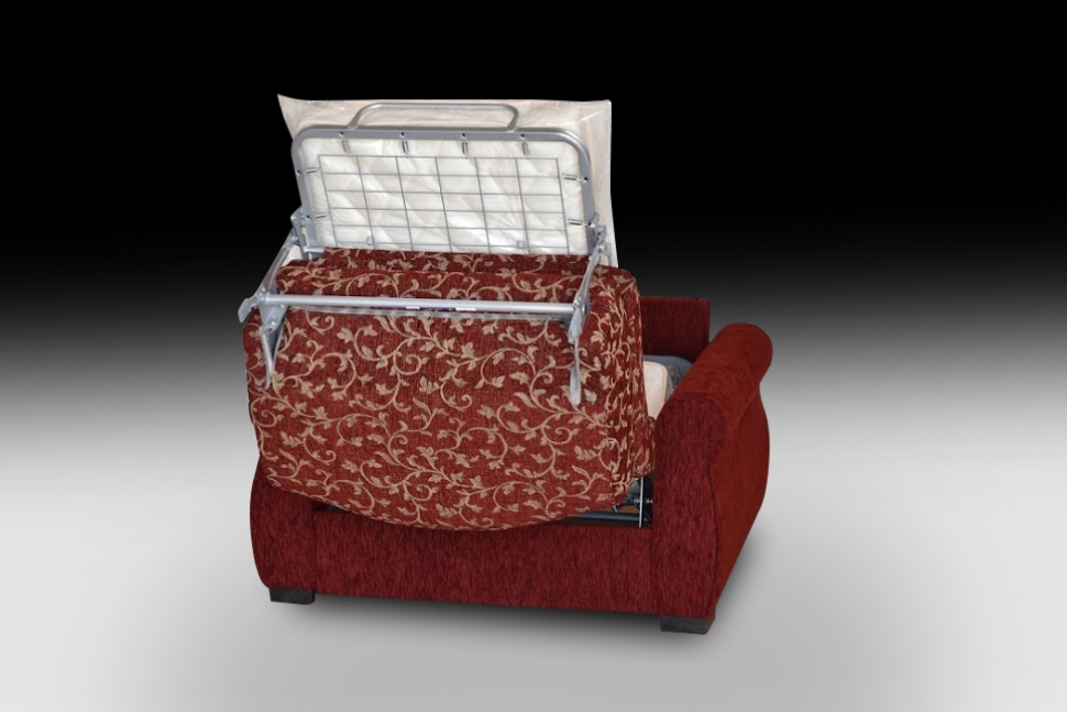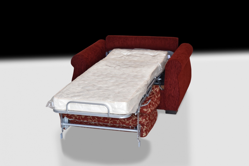 Meccanismo letto in acciaio strutturale con apertura mediante capovolgimento anteriore dello schienale e delle sedute senza rimozione degli elementi di tappezzeria.