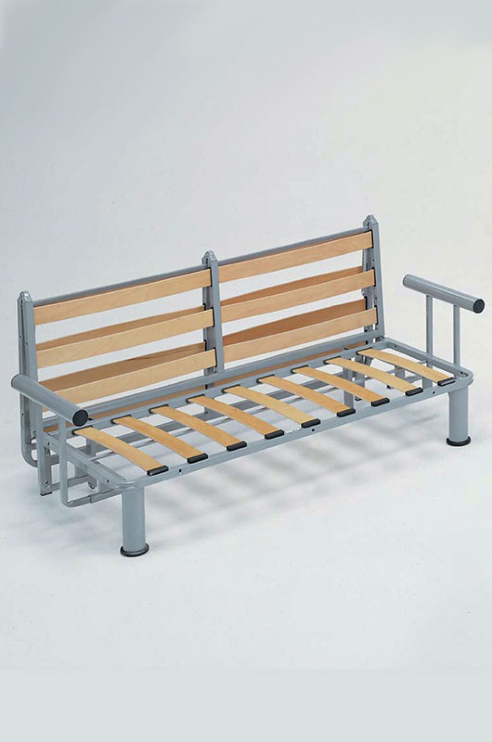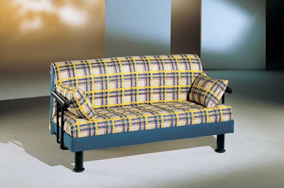 Meccanismo trasformabile in letto mediante la semplice apertura a scorrimento anteriore, dotato sulla base di attacchi per l’inserimento di braccioli e spalliera.